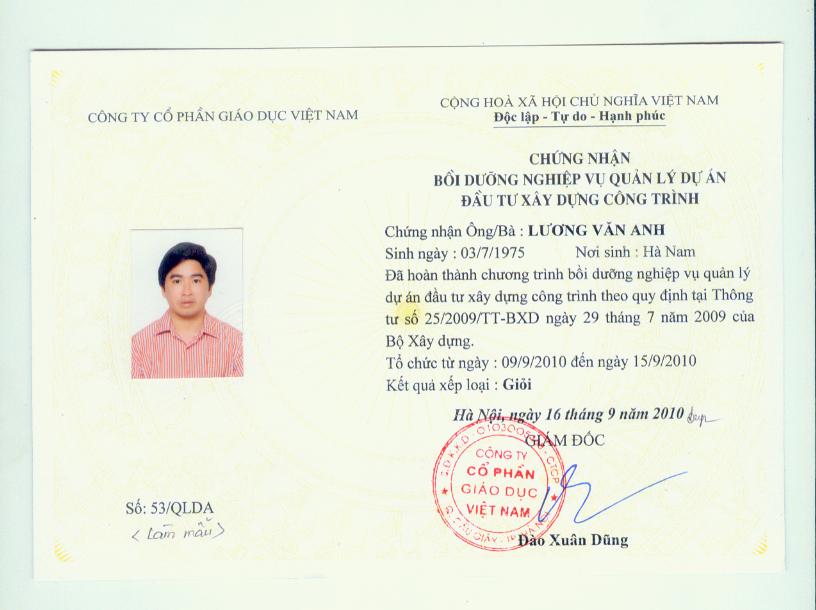 Mẫu chứng nhận Giám sát thi công xây dựng